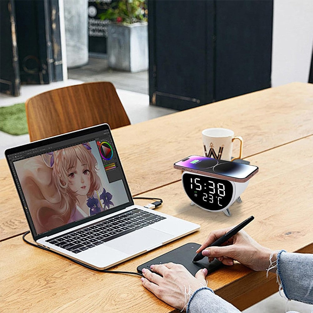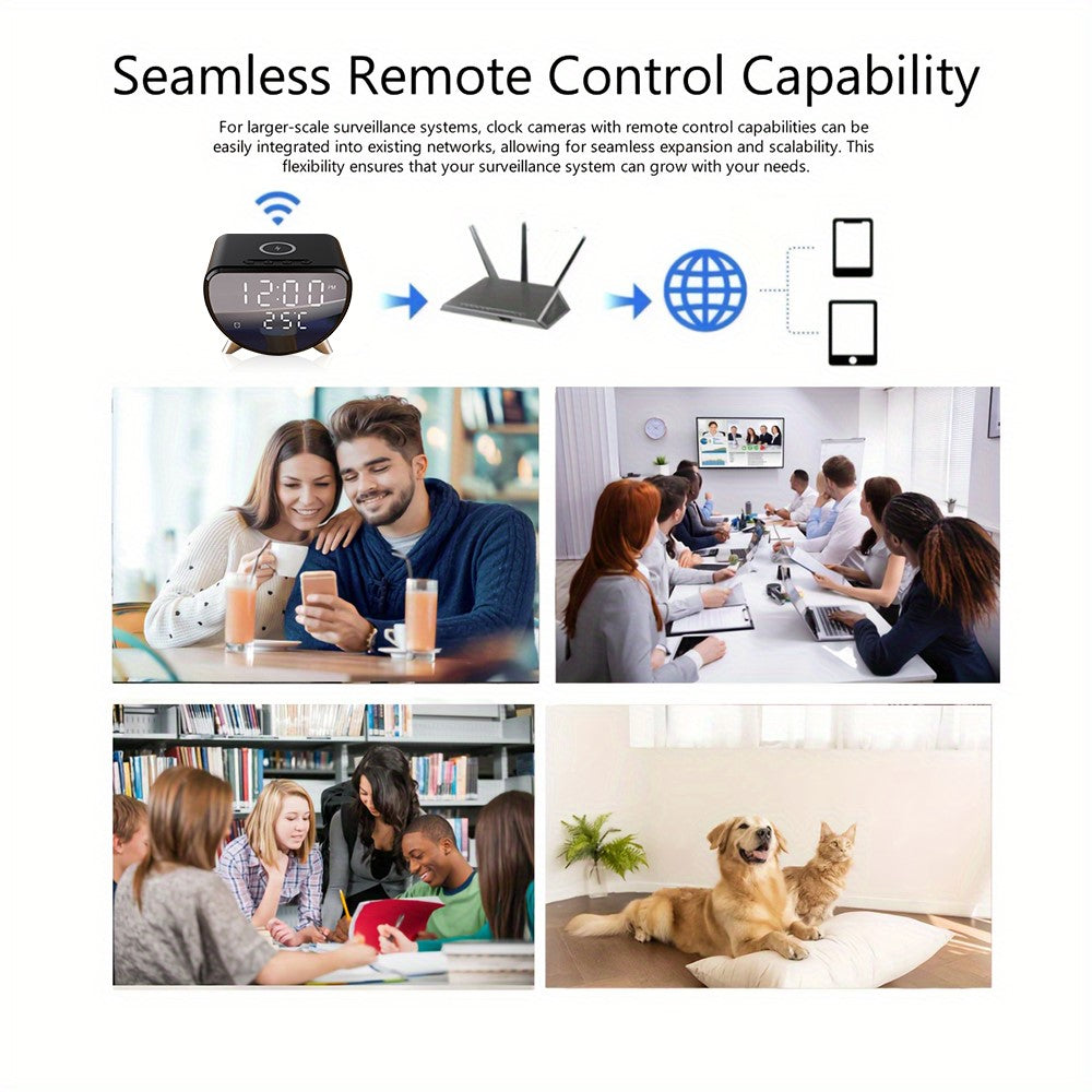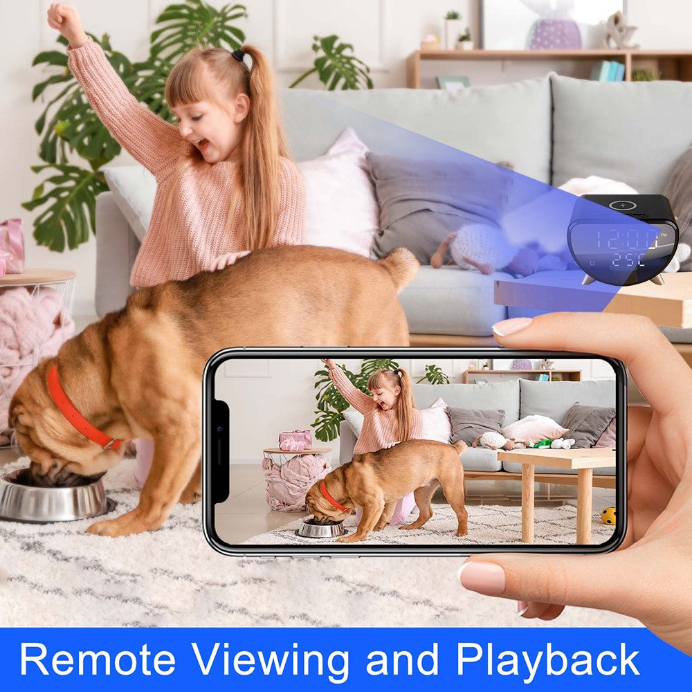 - 【5 in 1 Camera】 This device integrates a camera, clock, alarm, temperature display, and wireless charger, suitable for home security monitoring, phone charging, and wake-up services
