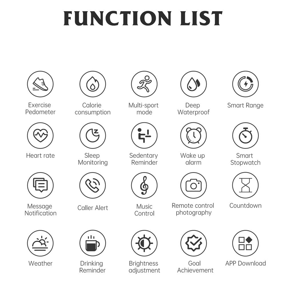 - Firmware basic features: Meter, mileage, calories, sleep, alarm clock, stopwatch, timer, sedentary reminder, remote control photo, music control
