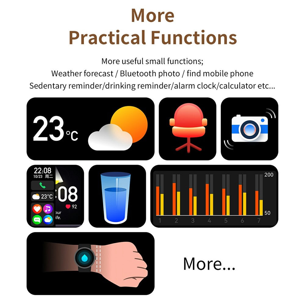 - 【Bluetooth-compatible Calling & Message Sync】Stay connected with Bluetooth-compatible calling functionality and seamless message synchronization, allowing you to manage communications directly from your wrist