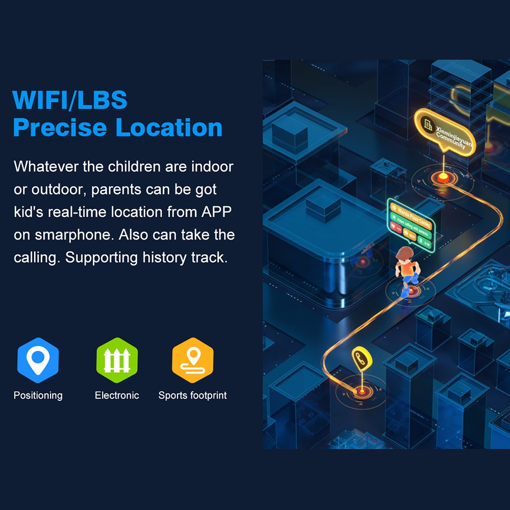 - One click to ask for help by pressing the SOS button for more than 5 seconds, the watch will circularly call family numbers presented in the APP and send message to the guardians