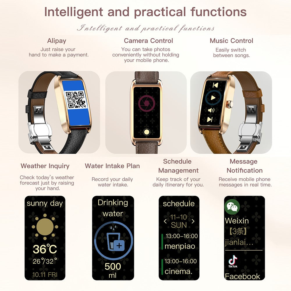 Dora T Smart Watch for Women Fitness Tracker IP68 Waterproof Heart Rate Monitor Smartwatch, Leather Band