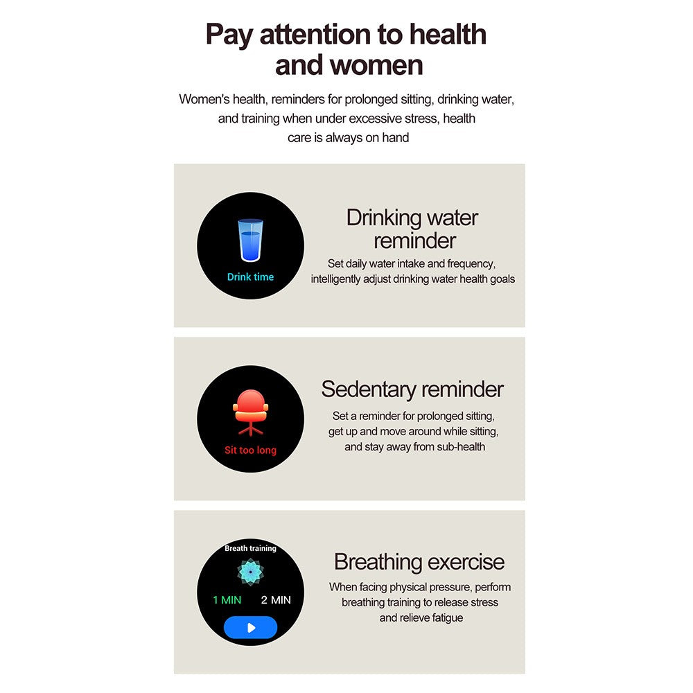 - 【Multidimensional Health Management】Comprehensive health monitoring includes heart rate, blood pressure, and sleep tracking, offering valuable insights into your well-being. The specialized women’s health feature tracks menstrual cycles, providing personalized support for every phase
