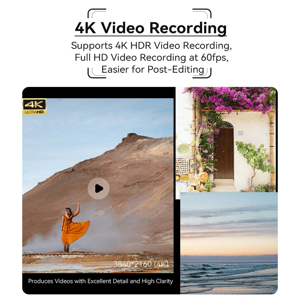 - 【High-Resolution Imaging】Capture stunning details with up to 64MP resolution and 5K video recording at 30fps, perfect for professional-quality content creation.