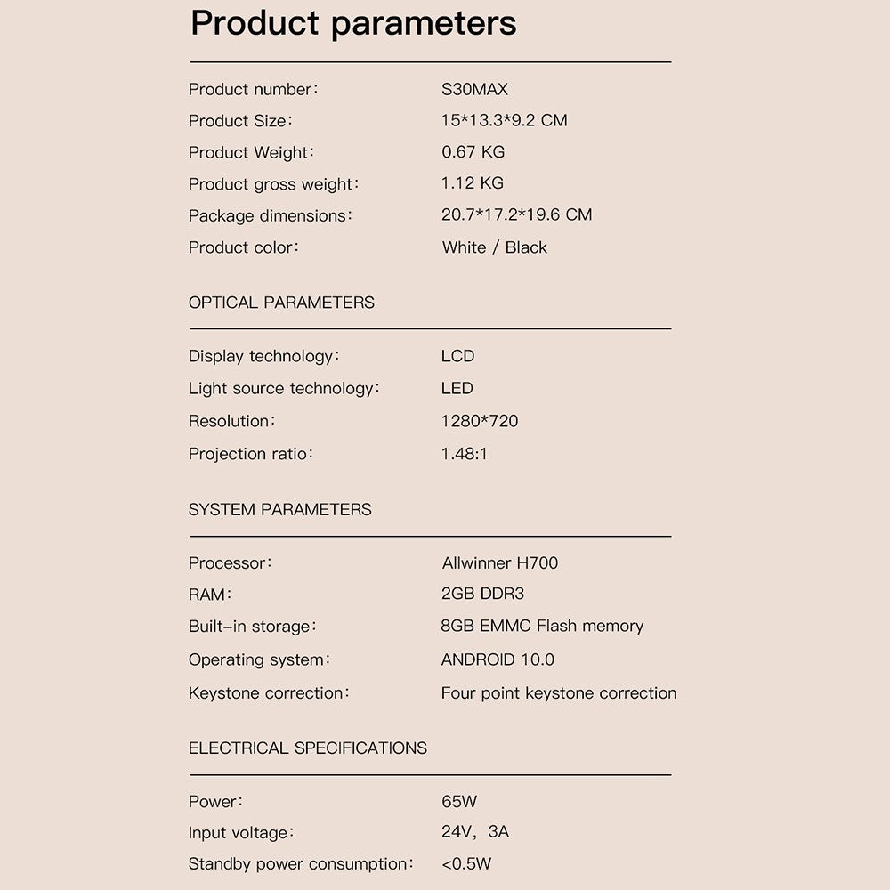 | Projection mode | Support front projection and formal installation/front projection and lifting/rear projection and formal installation/rear projection and back installation |