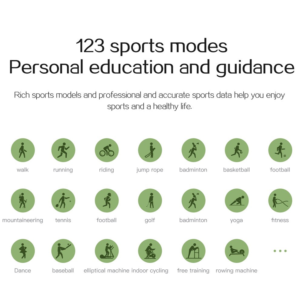 | Multi-Sport model-Watch | 123 multi-sport modes: walking, running, cycling, skipping, basketball, football, badminton, swimming, etc... |